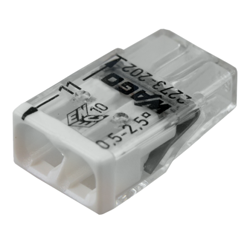 Экспресс-клемма электромонтажная 2 x 2.5 мм2 WAGO позволяет безопасно и быстро соединить 2 провода между собой (алюминиевые и медные как одножильные, так и многожильные).