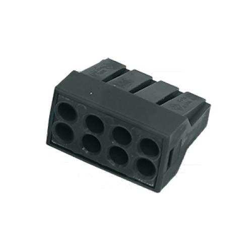 Электромонтажные экспресс-клеммы с лёгкостью, безопасно и мгновенно соединить 8 проводов между собой (алюминиевые и медные как одножильные, так и многожильные). Достаточно просто вставить жилу кабеля или провода в клемму и самозажимной контакт надежно зафиксирует соединение. Диаметр соединяемых проводов должен составлять в сечении от 1,0 до 2,5 мм2. Оболочка из черного пластика в совокупности с изолирующей пастой внутри делает контакт изолированным.