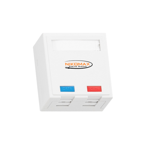 Розетка настенная 2 порта RJ-45 Nikomax, CAT5e, неэкранированная, со шторкой, белая