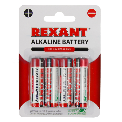 Алкалиновые батарейки AA/LR6 "REXANT" 4шт в блистерной упаковке.