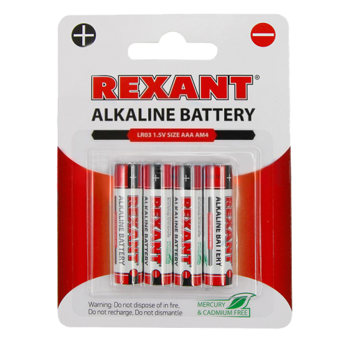 Алкалиновые батарейки AAA/LR03 "REXANT" 4шт в блистерной упаковке