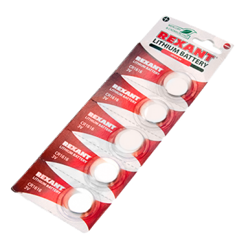 Элемент питания литиевый CR1616 Rexant, 3 V 50 mAh, 5 шт/упак