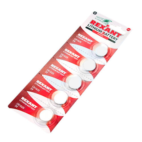 Элемент питания литиевый CR1620 Rexant, 3 V 70 mAh, 5 шт/упак