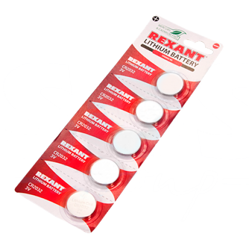 Элемент питания литиевый CR2032 Rexant, 5 шт в блистерной упаковке.