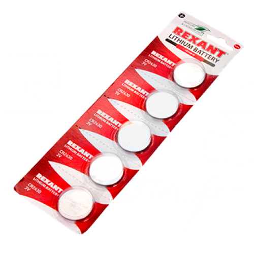 Источники питания,Батарейки Элемент питания литиевый CR2430 Rexant, 3 V 300 mAh, 5 шт/упак 30-1109