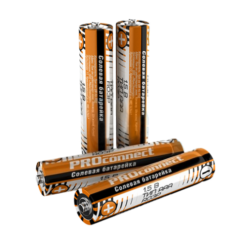 Солевые батарейки Proconnect это надежные, доступные источники питания с длительным сроком службы.