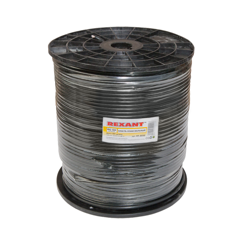 Кабель коаксиальный RG-6U Cu 48 Rexant, полиэтилен, черный, 305 м