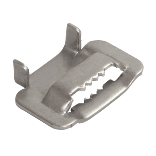 Замки утяжеленные из нержавеющей стали с зубцами для монтажной ленты Бугель ( замок монтажный) представляет собой монолитную пластину, намного прочнее скрепы. Обладает острыми зубцами, удерживающими стальную бандажную ленту. Бугель монтажный предназначен для фиксирования на опорах монтажной ленты