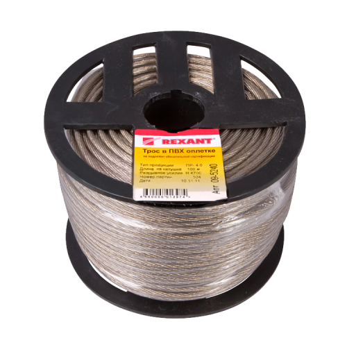 Трос стальной 4 мм Rexant, в ПВХ изоляции, катушка 100 м