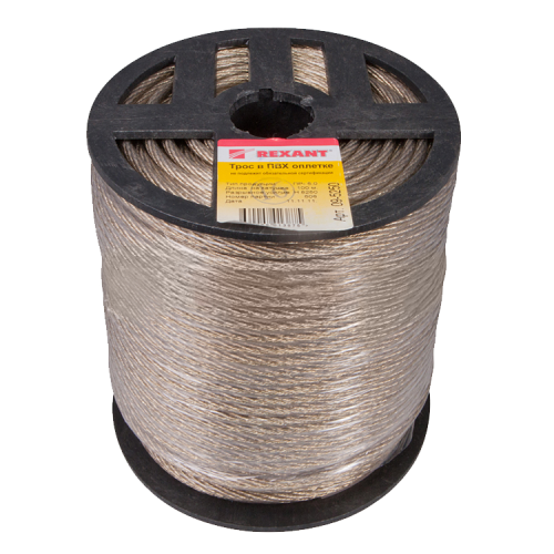Трос стальной 5 мм Rexant, в ПВХ изоляции, катушка 100 м
