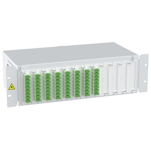 - ~64-SC/APC: 64 порта для одномодовых (Single-mode) волокон с полировкой APC (Angled Physical Contact), что снижает уровень обратного отражения и значительно улучшает характеристики передачи сигнала.