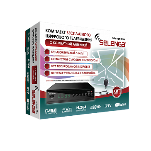 Комплект бесплатного цифрового телевидения с комнатной антенной SELENGA