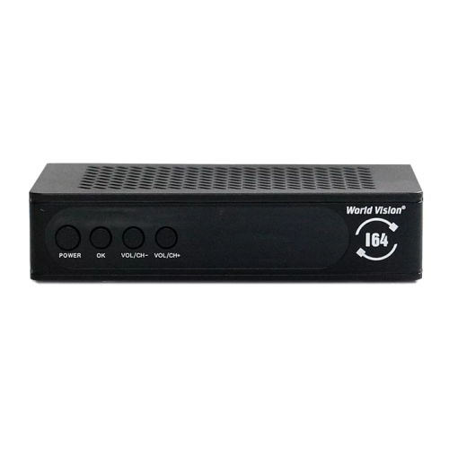 IPTV телеприставка World Vision I64 построена на базе процессора Availink 1506T (Sunplus), с оперативной памятью в 64 Мб и флеш-памятью 4 Мб. На лицевой панели присутствует 4-разрядный 7-сегментный светодиодный индикатор отображающий номер канала и часы.