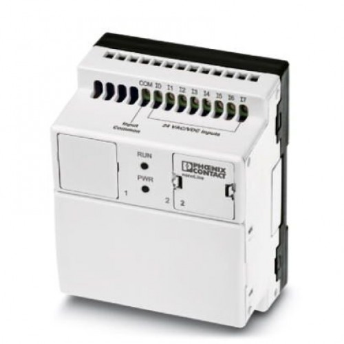 Базовый модуль Nanoline, 24 В DC. Имеет 6 каналов цифрового ввода и 4 канала цифрового вывода (релейного типа). Могут быть добавлены каналы ввода-вывода, возможно использование до 3 модулей расширения ввода-вывода. Опциональный коммуникационный модуль обеспечивает подключение к сети или порту последовательной передачи. Опциональный пульт управления с пользовательским интерфейсом. Программирование с помощью nanoNavigator.