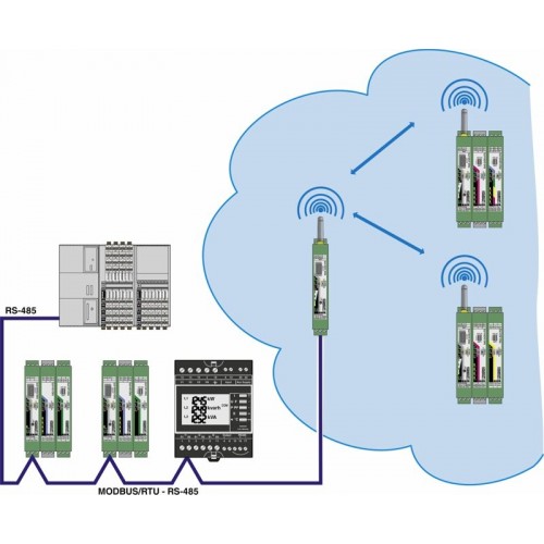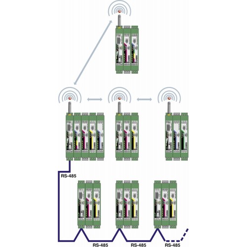 Многоточечный мультиплексор для шинной системы RS-485 Radioline, с возможностью расширения модулями ввода-вывода, возможность использования в качестве шинного интерфейса Modbus/RTU или в сочетании с системой радиосвязи Radioline, до 99 станций, радиус действия до 1,2 км с использованием медных проводов предприятия