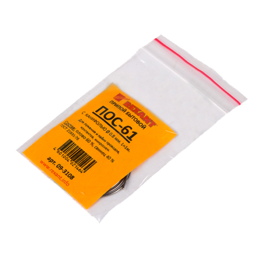 Припой с канифолью спираль 1 м Rexant, 0.8 мм предназначен для создания механически прочного и герметичного соединения деталей между собой или для их фиксирования на плате (пайка и лужение радиоэлектронных приборов, медицинской аппаратуры, автодеталей, печатных плат, электроаппаратуры и т.д.). Представляет собой проволоку из сплава олова (60%) и свинца (40%), скрученную в катушку. В её структуре также содержится специальный флюс без запаха - 2.2%, что позволяет сделать паяное соединение более прочным.
