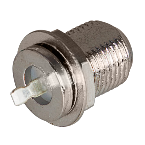 Разъем F(гнездо) на корпус с контактом Rexant предназначен для передачи сигнала через коаксиальный кабель c волновым сопротивлением 50 и 75 Ом, идущий к телевизионной и видеоаппаратуре.