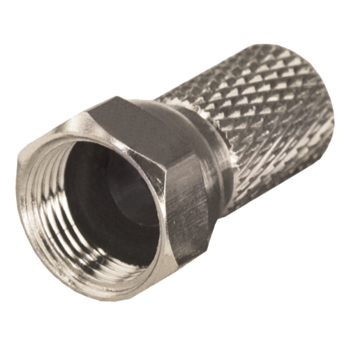 Разъем данного вида не имеет непосредственного штекера, поэтому роль штекера выполняет центральная жила кабеля, что позволяет избежать дополнительных потерь сигнала. F-коннектор изготовлен из никелированного сплава меди (биметалл) и имеет резиновый уплотнитель, который убережет от попадания влаги в контактные соединения. Разъем устанавливается на кабель методом накрутки гильзы разъема на внешнюю оболочку кабеля, после соответствующей зачистки контактов, и не требует применения каких-либо специальных инструментов. F-штекер выступает в роли своеобразного экрана за счет накручивания на оплетку кабеля для выполнения роли электрического контакта.