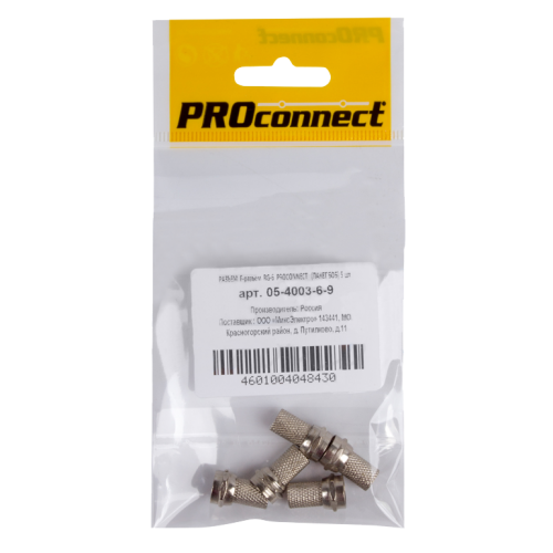 Разъем F(штекер) резьбовой на RG6 Proconnect, 5 шт/упак