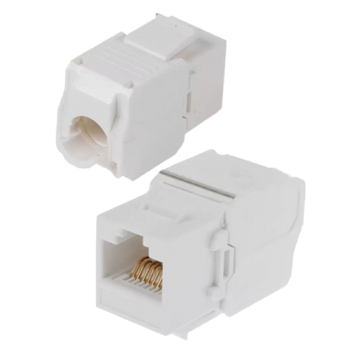 Монтаж на кабель витая пара осуществляется руками с помощью специальных зажимов/ножей внутри корпуса разъема и не требует никаких специальных инструментов (зачисток и обжимных). Благодаря современной конструкции, кабель надежно фиксируется, что исключает его выпадения из джека. Разъем RJ45(гнездо) 8P8C быстрозажимной изготовлен из качественного пластика и имеет золотое напыление на ножах для улучшения контакта с жилами кабеля.