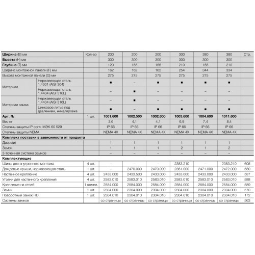 Компактный распределительный шкаф AE из нержавеющей стали 1.4301, (AISI 304), или 1.4404, (AISI 316L), вкл. монтажную панель. Степень защиты IP 66, IP 55 для 2-дверных шкафов.