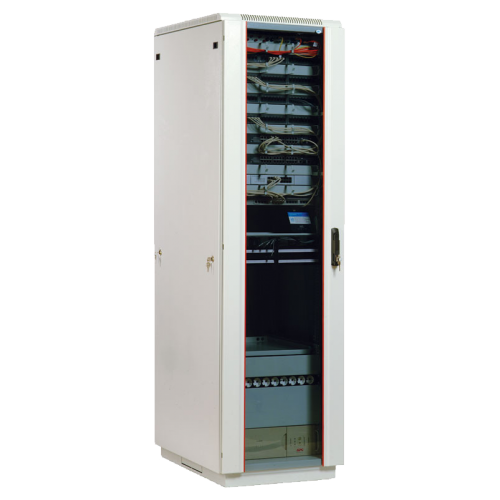 Стандартно шкафы комплектуются задней металлической стенкой, и тремя видами дверей: цельнометаллической, с тонированным ударопрочным стеклом, и дверью с перфорацией. Возможна комплектация двумя дверьми, исключающая заднюю стенку. В шкафах 18-38U, дверь фиксируется усиленным точечным замком, 42-47U ригельным. Двери имеют как правую, так и левую навеску.