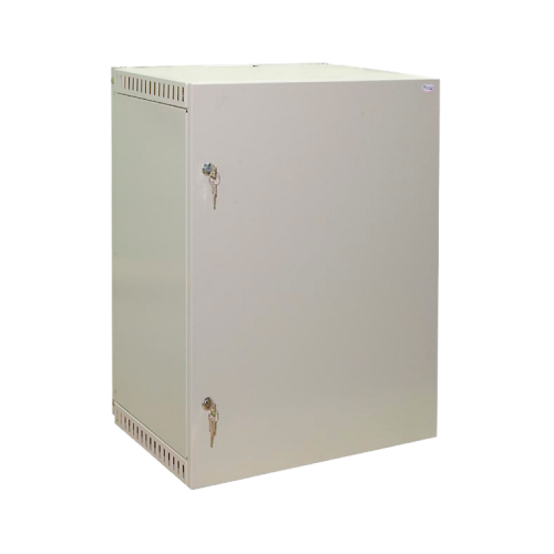 Основа конструкции шкафа 19" - настенный короб с каркасом. Боковые стенки и двери легко снимаются без демонтажа оборудования. Нижнее и верхнее отверстия кабельного ввода снабжены гребенкой для фиксации кабеля. Вентиляция шкафа осуществляется за счет перфорированных отверстий в боковых поверхностях, при этом исключается попадание инородных предметов и прямой доступ к оборудованию, установленному внутри.
