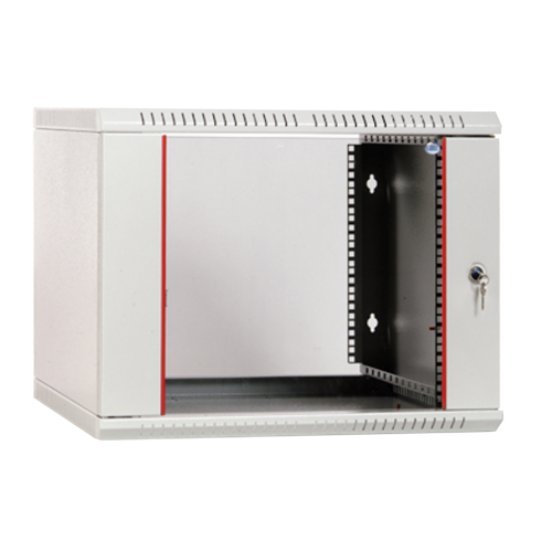 Настенный шкаф 19" ШРН-Э имеет полностью разборную конструкцию и состоит из пяти основных частей: крыша, дно, две боковые стенки, дверь. Настенный шкаф 19" ШРН-Э легок в сборке. За счет элементов крепления каркас шкафа имеет повышенную жесткость. Возможна комплектация металлической дверью и дверью с тонированным стеклом. Возможна установка двери как с правой, так и с левой стороны. Дверь фиксируется точечным замком. Предусмотрены два кабельных ввода в верхней и нижней частях шкафа, размер – 95х40мм. Перфорация обеспечивает хорошую вентиляцию установленного оборудования. В основание или крышу шкафа возможна установка вентиляторного модуля МВ-400-2. Для установки модуля демонтируется заглушка, и модуль фиксируется шестью винтами. Вертикальные направляющие регулируются по глубине. Система заземления входит в стандартную комплектацию. Возможна установка задней стенки.