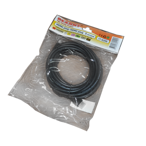 Шнуры,HDMI и DVI Шнур HDMI - HDMI GOLD Rexant, с фильтром, 5 м 17-6206