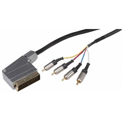 Шнур SCART - 4 RCA GOLD металл Rexant, премиум, 3 м предназначен для качественной передачи видео и аудиосигнала между устройствами (телевизор, видеомагнитофон, DVD-проигрыватель), имеющими разъемы типа SCART и RCA. Соединительный шнур с одной стороны имеет металлический (повышает помехозащищенность) штекер SCART-разъема (европейский стандарт для подключения мультимедийного оборудования) и с другой четыре зажимных металлических штекера RCA-разъема. Такие RCA разъемы повысят надежность соединения в несколько раз. В целях улучшения характеристик и снижения потерь передаваемого сигнала контакты разъемов имеют золотое напыление. Длина шнура составляет 3 метра. Профессиональный уровень надежности достигается благодаря применению качественных материалов и высокотехнологичного уровня исполнения шнура.