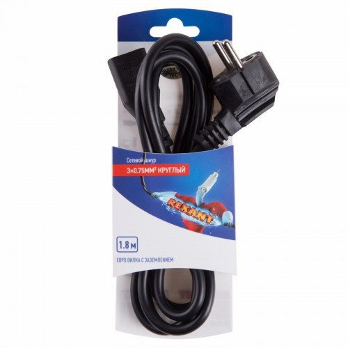 Шнур сетевой Евро 0.75 мм PE Rexant, с заземлением, 1.8 м