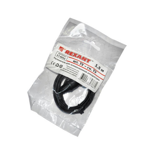 Шнур ТВ (штекер) - ТВ (гнездо) Rexant, черный, 1.5 м