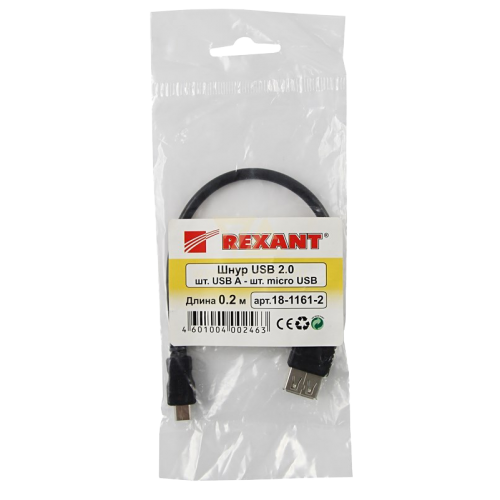 Шнур USB A(гнездо) - Micro USB A(штекер) 5 мм Rexant предназначен для подключения устройств (мобильных телефонов, устройств хранения информации, смартфонов, портативных MP-3 плееров, клавиатуры и мыши, цифровых фото- и видеокамер и т.п.) к компьютеру, зарядному устройству или другой технике, имеющей разъем Micro USB и USB-А.